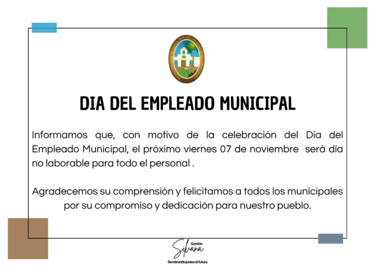 Con motivo del Día del Empleado Municipal, se informa que el viernes 7 de noviembre será no laborable para el …