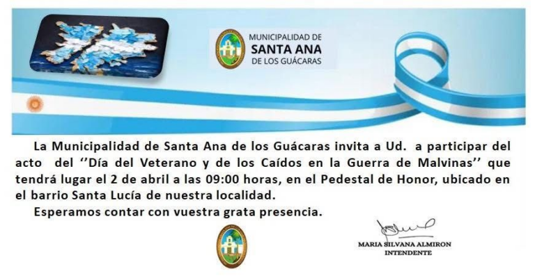 La Municipalidad de Santa Ana de los Guácaras invita a todos los vecinos a participar del acto conmemorativo por el …