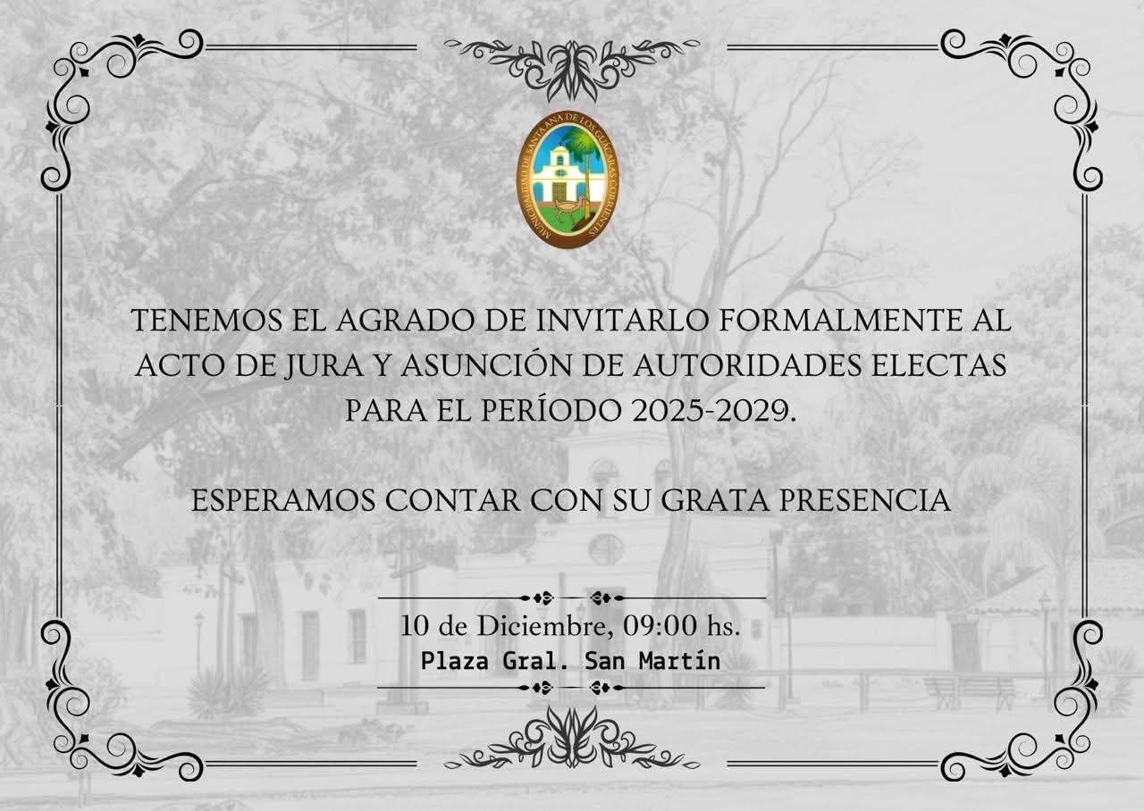 Tenemos el agrado de invitarlo formalmente al acto de jura y asunción de autoridades electas para el período 2025-2029.