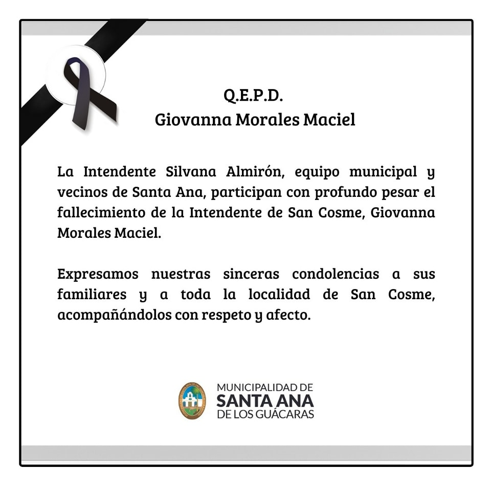 Desde Santa Ana de los Guácaras acompañamos con profundo respeto a familiares y a toda la localidad de San Cosme.
