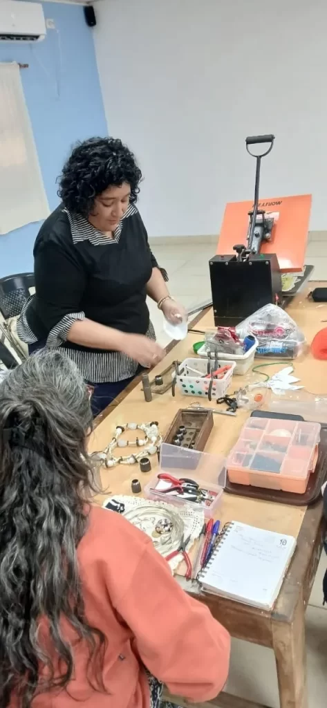 En el taller se aprenden técnicas de producción de la joyería y se promueve la creación de emprendimientos.