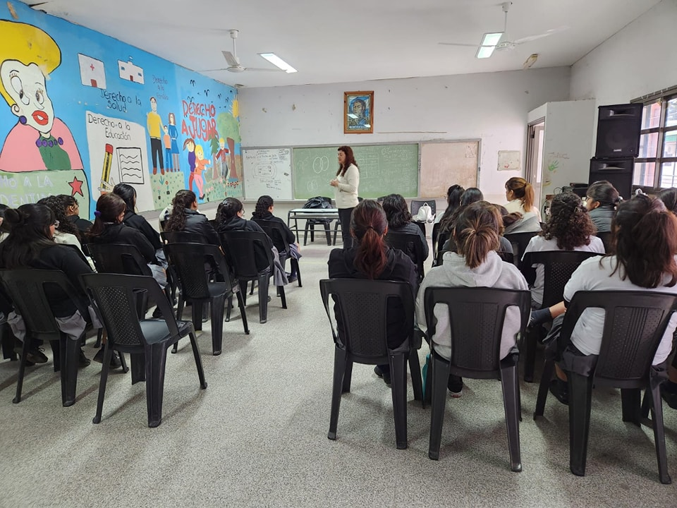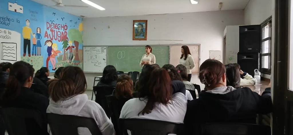 La Dra. Elena Rosciani, especialista en tocoginecología, brindó una charla sobre enfermedades de transmisión sexual y anticocepción, dirigida a alumnas de los dos últimos años del nivel secundario.