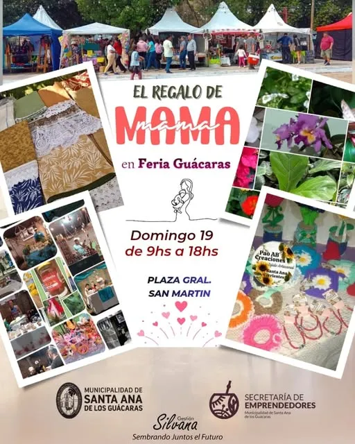 Este domingo 19 de octubre, de 9 a 18 horas, los emprendedores te esperan en la Plaza Gral. San Martín, donde podés adquirir los regalos para mamá, para disfrutar de una jornada especial con productos únicos y llenos de amor.