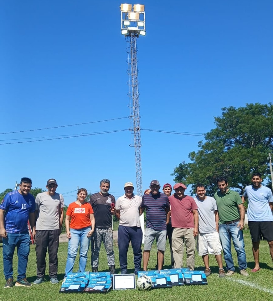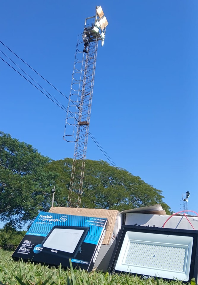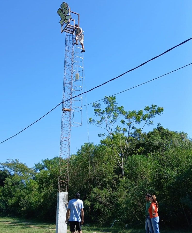 Se colocaron 16 reflectores de 200 watts, para mejorar la iluminación de la cancha municipal, donde practican y compiten los equipos de fútbol de veteranos y vecinos.