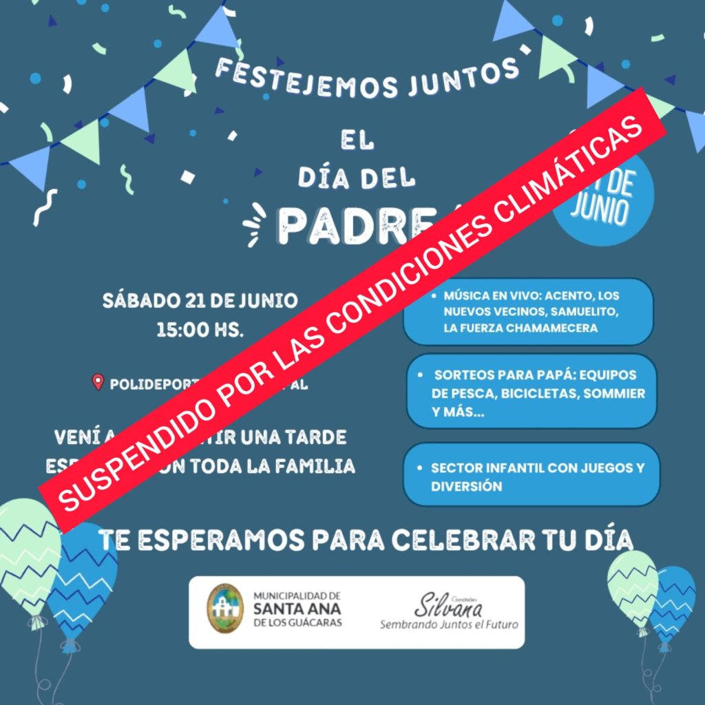 Debido a las condiciones climáticas desfavorables y para seguridad de todos, el evento por el Día del Padre, queda suspendido.