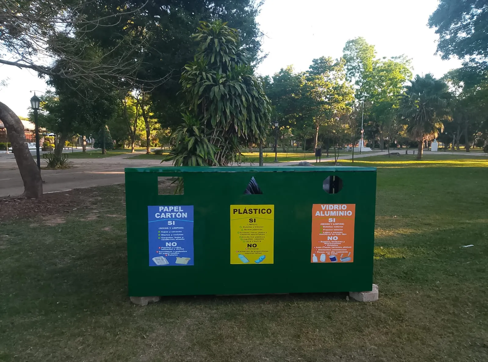 Se colocaron dos puntos verdes para reciclaje en las plazas San Martin y Belgrano
