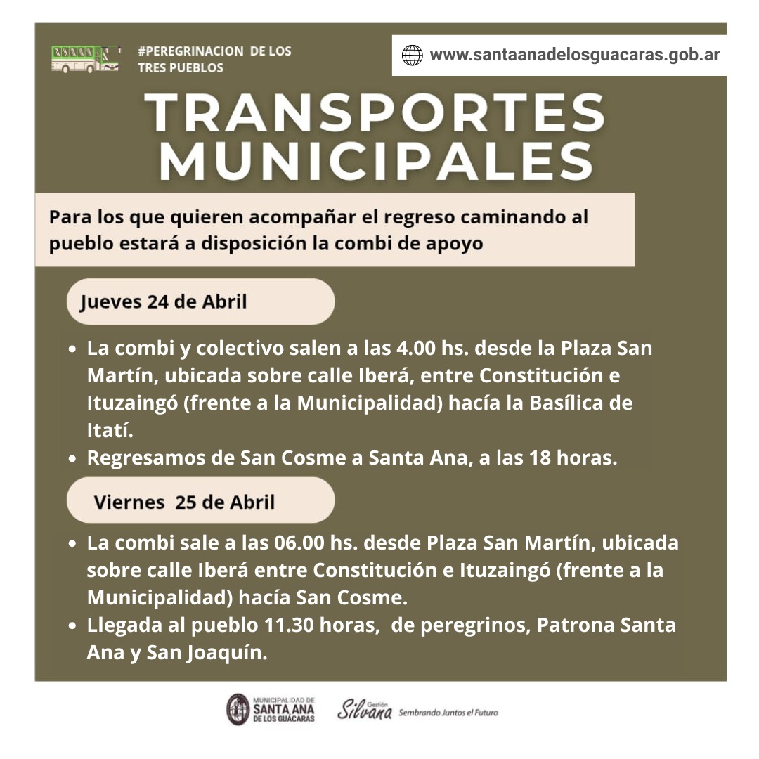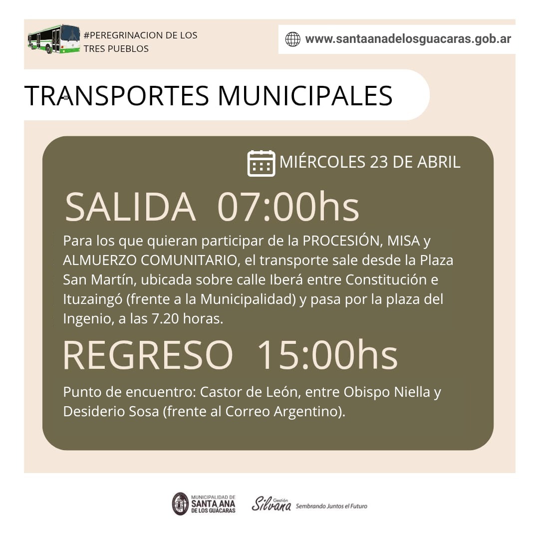 La Municipalidad informa que pone a disposición de vecinos, transportes gratuitos para quienes quieran asistir a las actividades religiosas con motivo del Aniversario de la Proclamación de Nuestra Señora de Itatí como Patrona y Protectora de Corrientes.