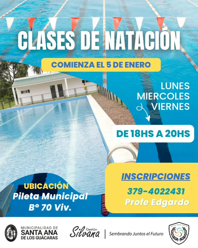Te invitamos a aprender y pasar un lindo momento en las clases de natación, en la Pileta Municipal del B° 70 Viviendas.