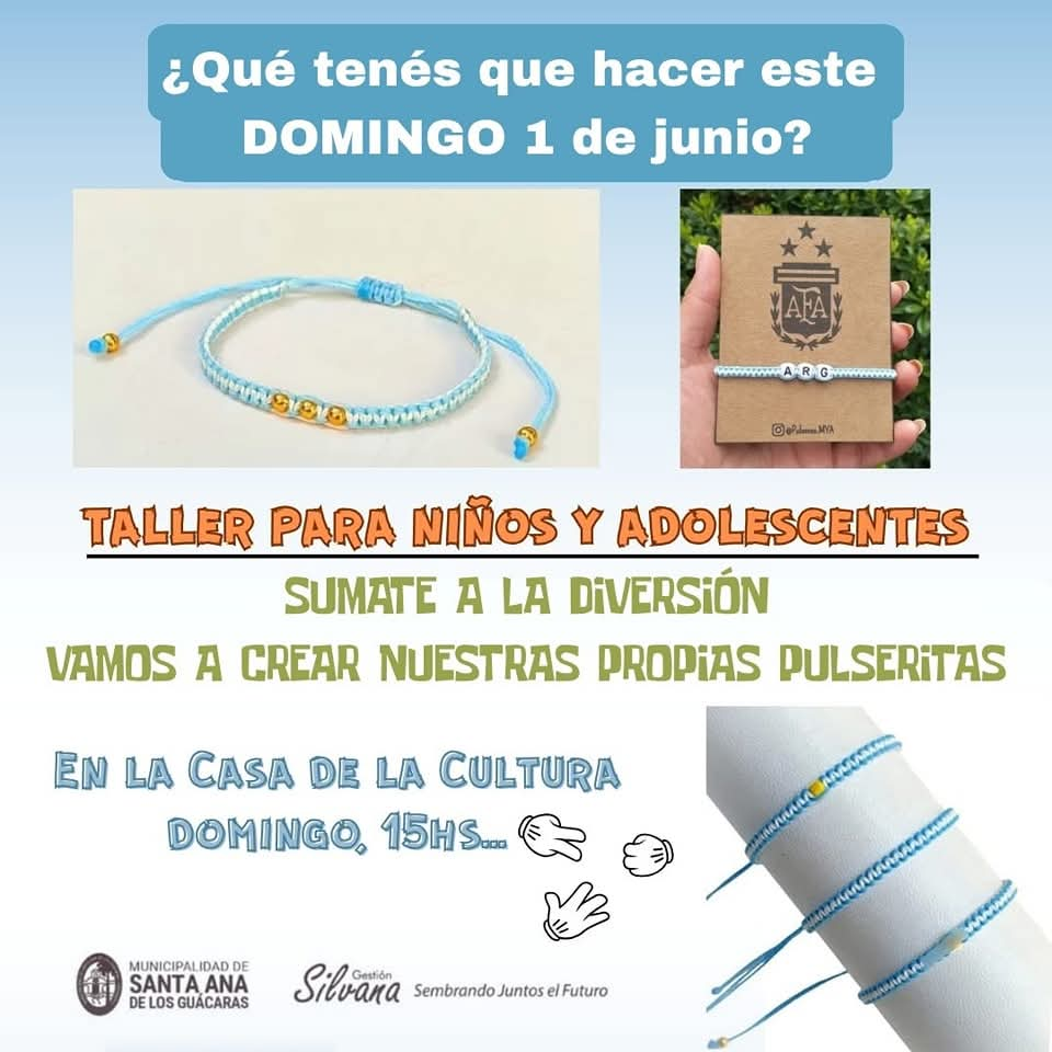 Te invitamos a un Taller de Pulseritas, para niños y adolescentes.